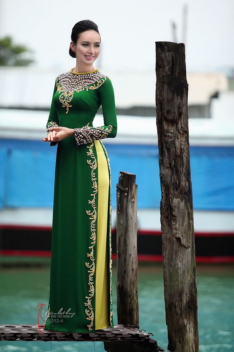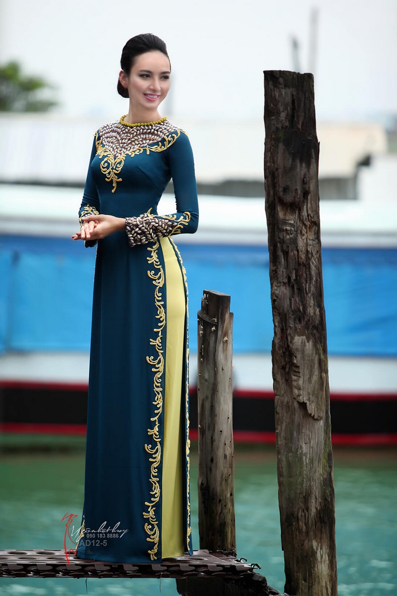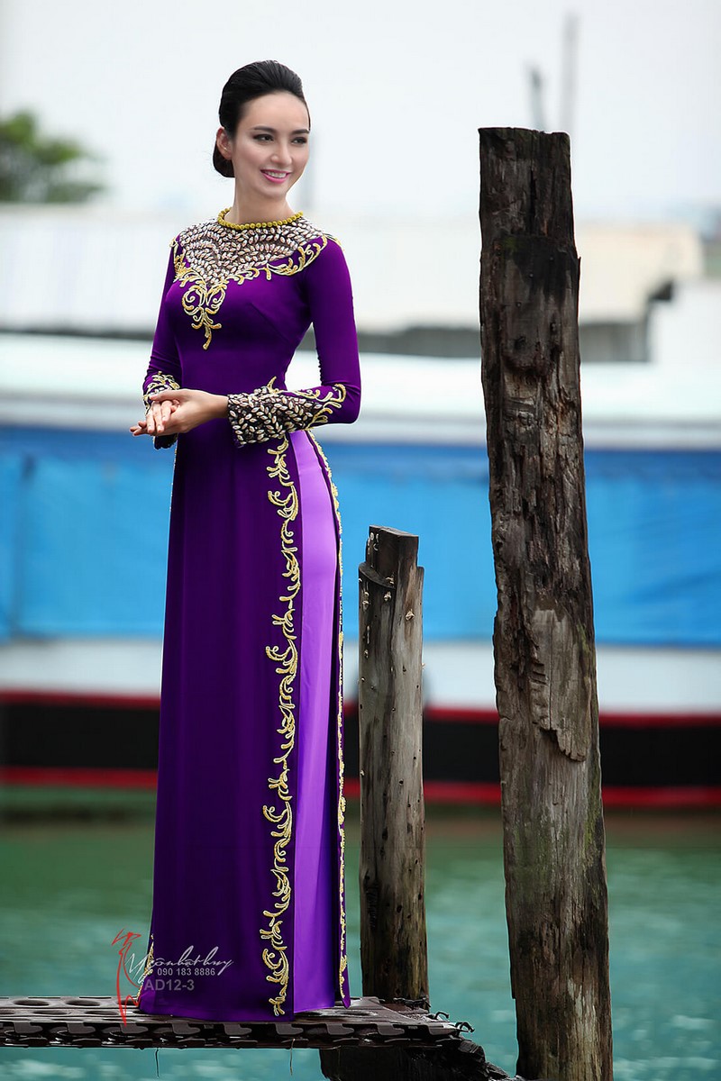 Áo Dài trên chất liệu vải Hàn lụa nhung dầy vừa phải,có độ co giãn nhẹ rất thoải mái.Cổ tròn ,tạo nét trẻ trung và thoải mái nhưng vẫn tôn dáng sang trọng cho tà áo.Áo được thiết kế đính họa tiết hoa văn thêu đắp và kết đá pha lê.Phù hợp nổi bật cho các mẹ tuổi trung niên làm sui trong các tiệc cưới hỏi,đi lễ,đi họp các buổi tiệc.